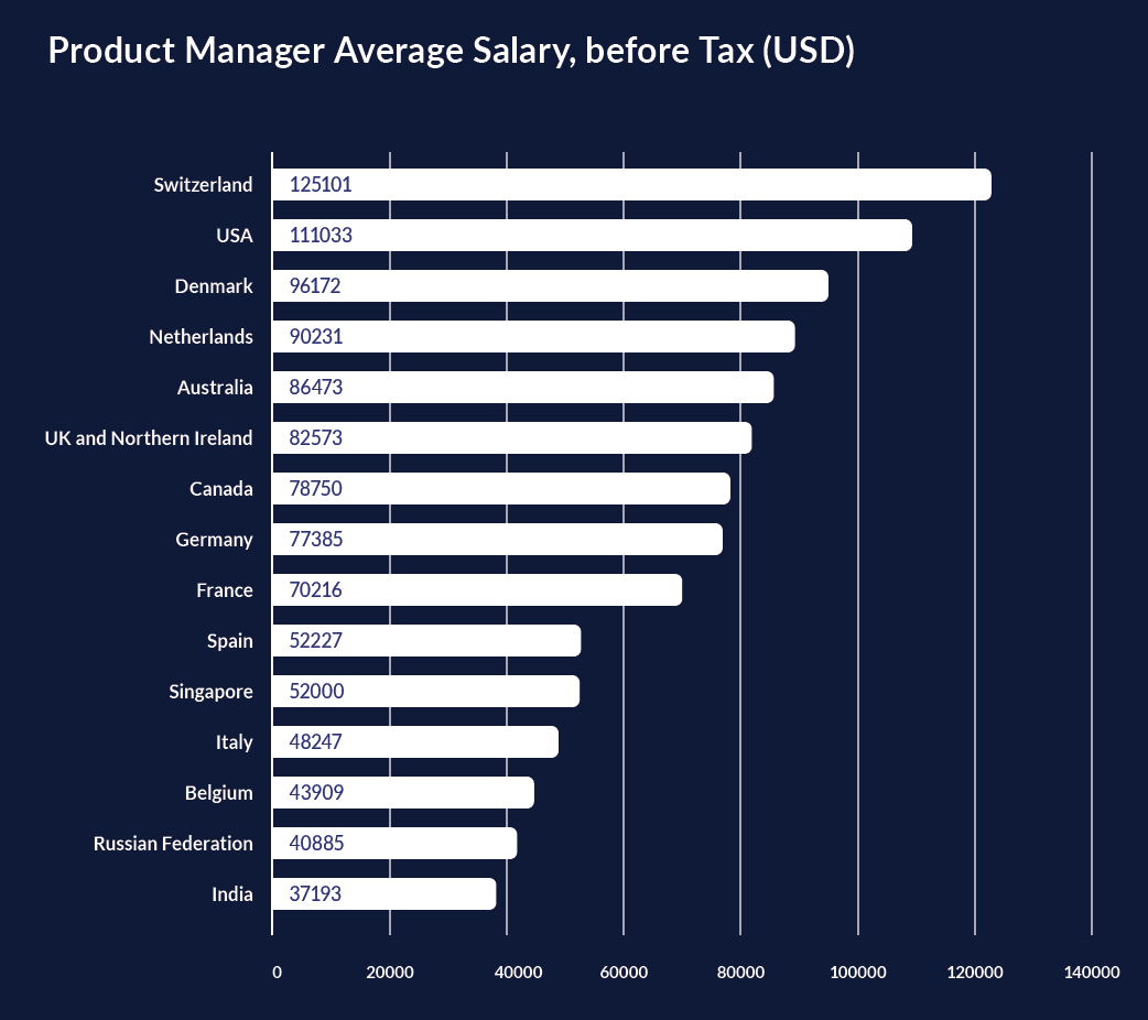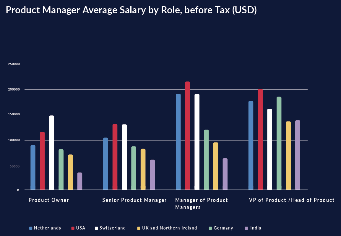 PO is one of the most demanding job in the industry. According to the survey conducted by Product Management Festival the salary range varies from country to country as below: