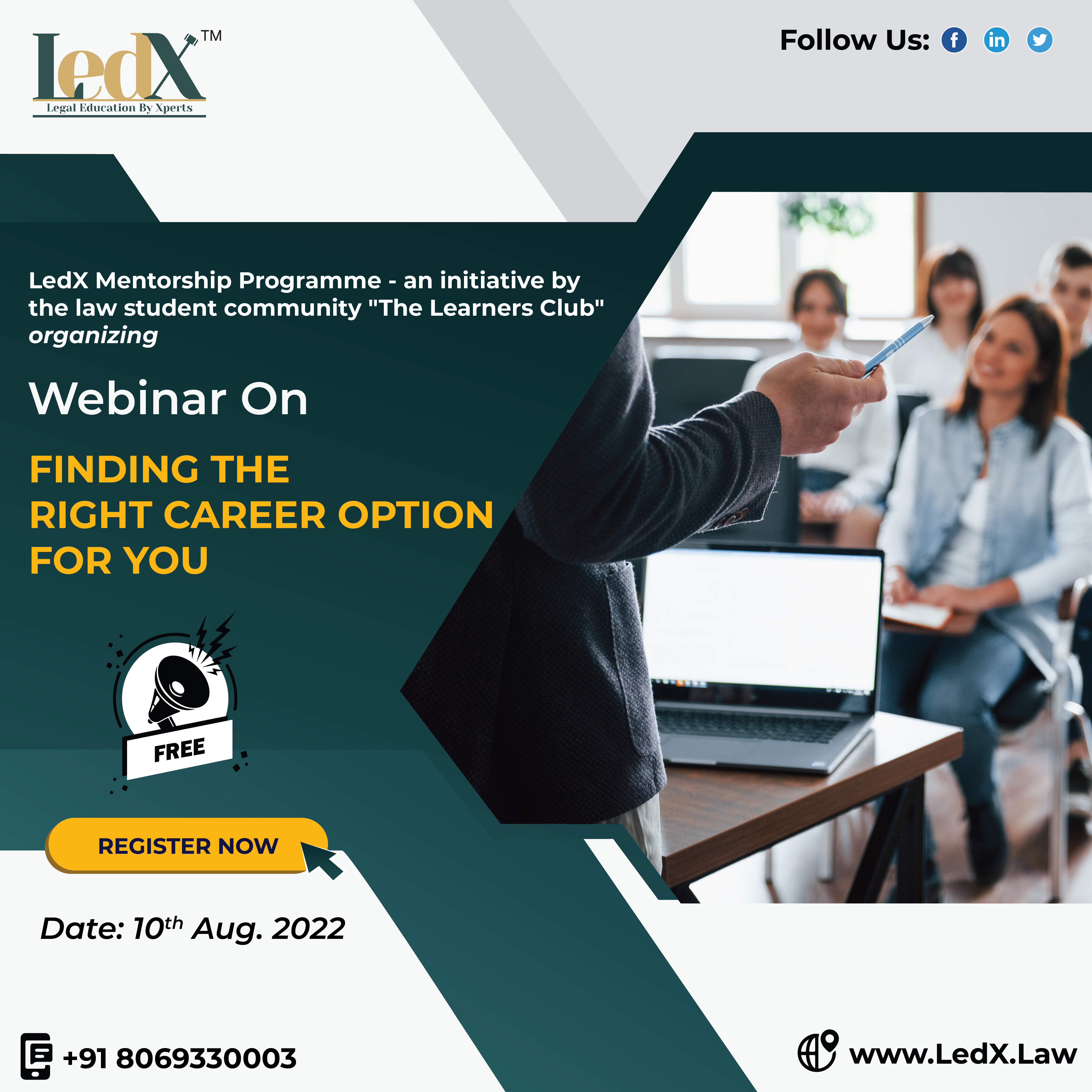 LedX is organising a Free Webinar on "Finding the right career choice for you", get mentorship and guidance for choosing a career which you find interesting and how to make a successful career in that field.