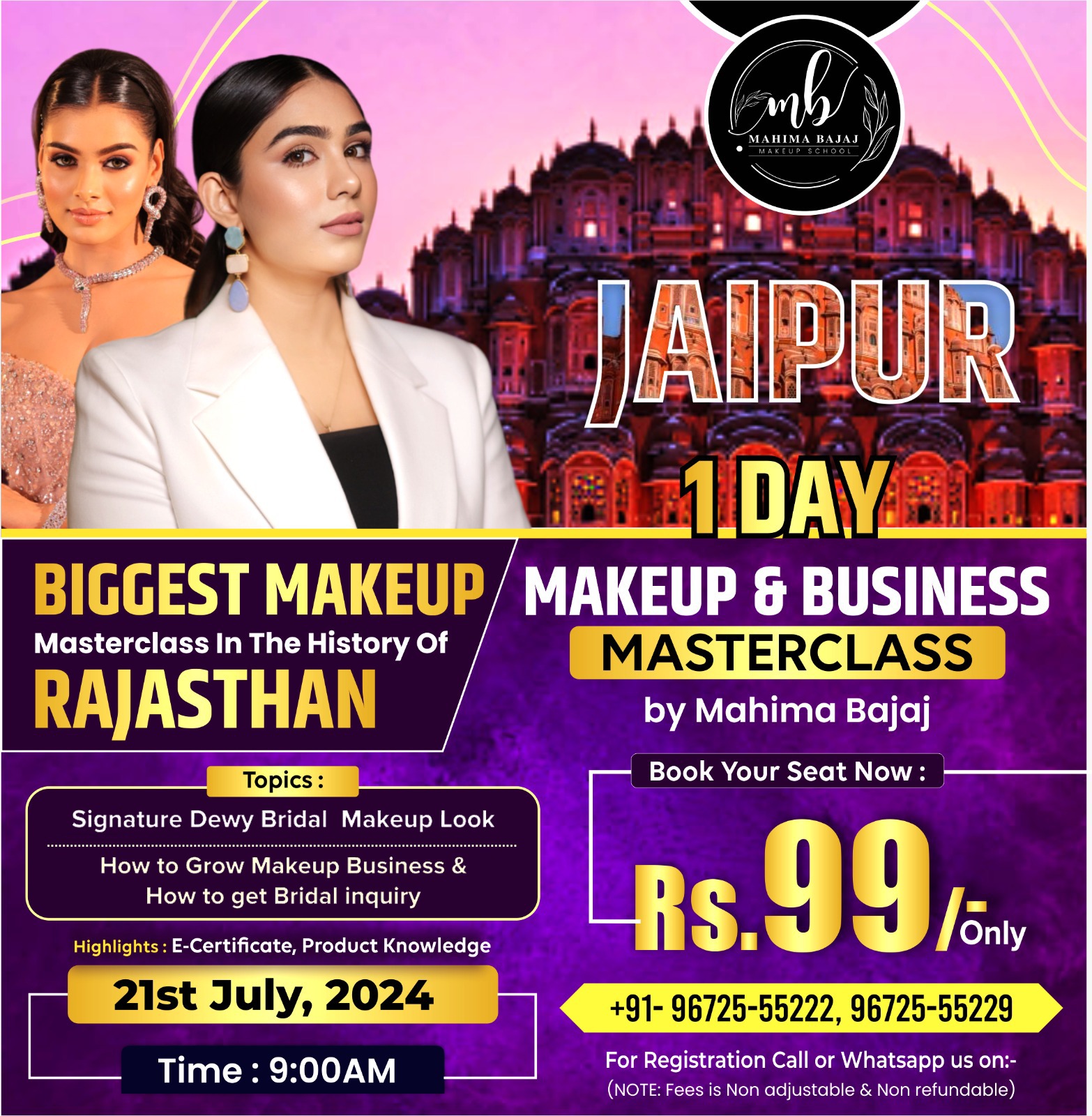 Don't miss out on this chance to elevate your makeup artistry and business acumen for just Rs.99/-. Secure your spot now, as seats are limited!