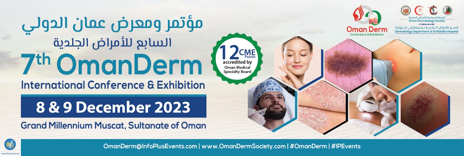We are delighted to announce the merger of Oman Dermatology Society conferences represented by Muscat Derm and Salalah Derm into Oman Derm Conference. Herewith, we take the opportunity to invite you to the OmanDerm 7 conference, which will be conducted on the 8 & 9 of December 2023 at the Grand Millennium Muscat Hotel. This conference is representing the primary skin care event in the Sultanate of Oman. OmanDerm 7 conference will offer unparalleled opportunities to present to you the latest products and services and meet face-to-face with leading dermatologists and key decision-makers from around the world. Oman is becoming one of the most sought-after destinations globally because of its rich cultural heritage, long-standing history, stunning landscapes and exceptional hospitality that will give you the best of both worlds. We would like to thank you in advance for your support and we look forward to welcoming you to the conference.