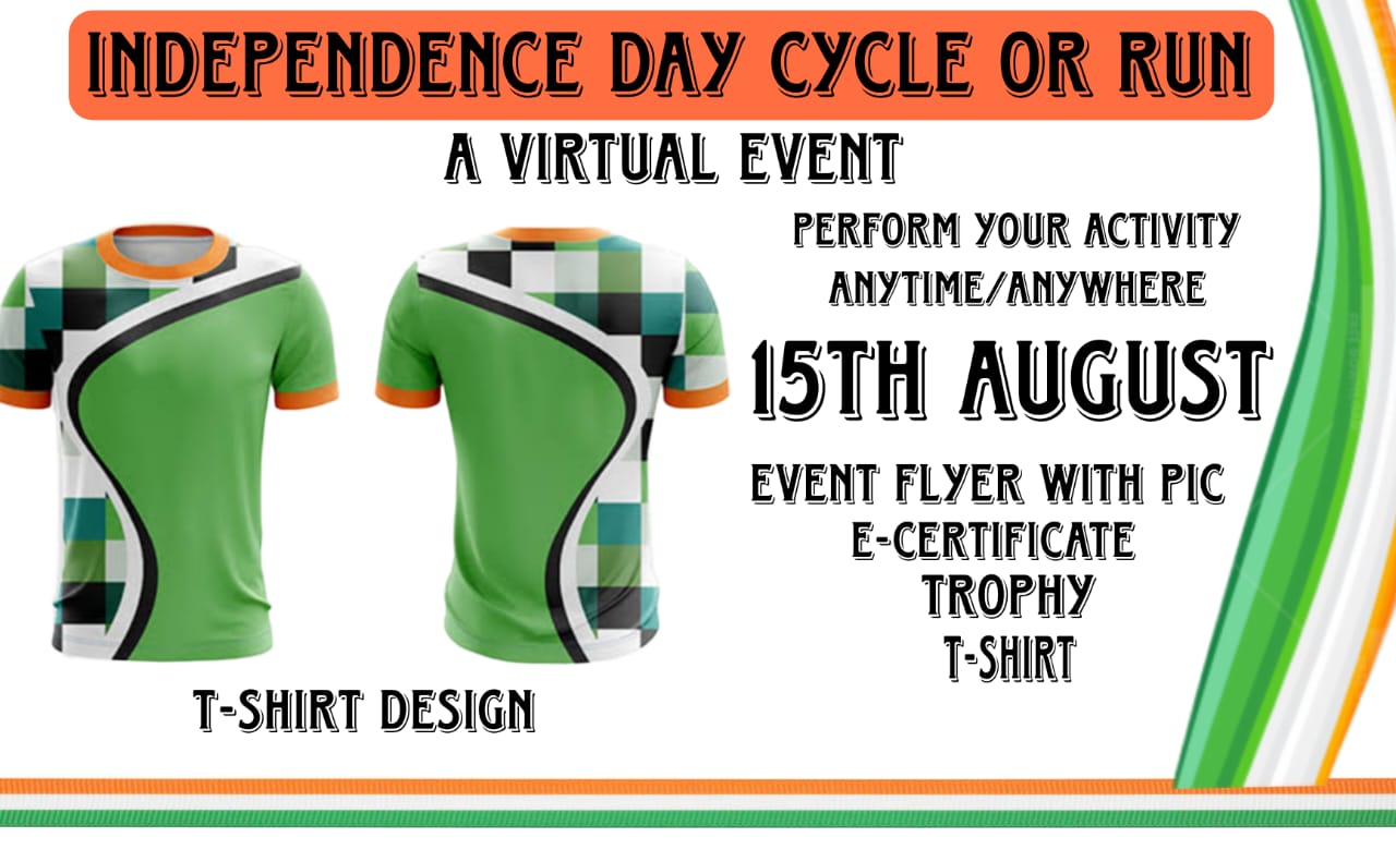 "Independence Day - Cycle or Run" - A one day event spread for whole day. You can run / walk / cycle at any place and any time on the said date i.e 15th August 2023.