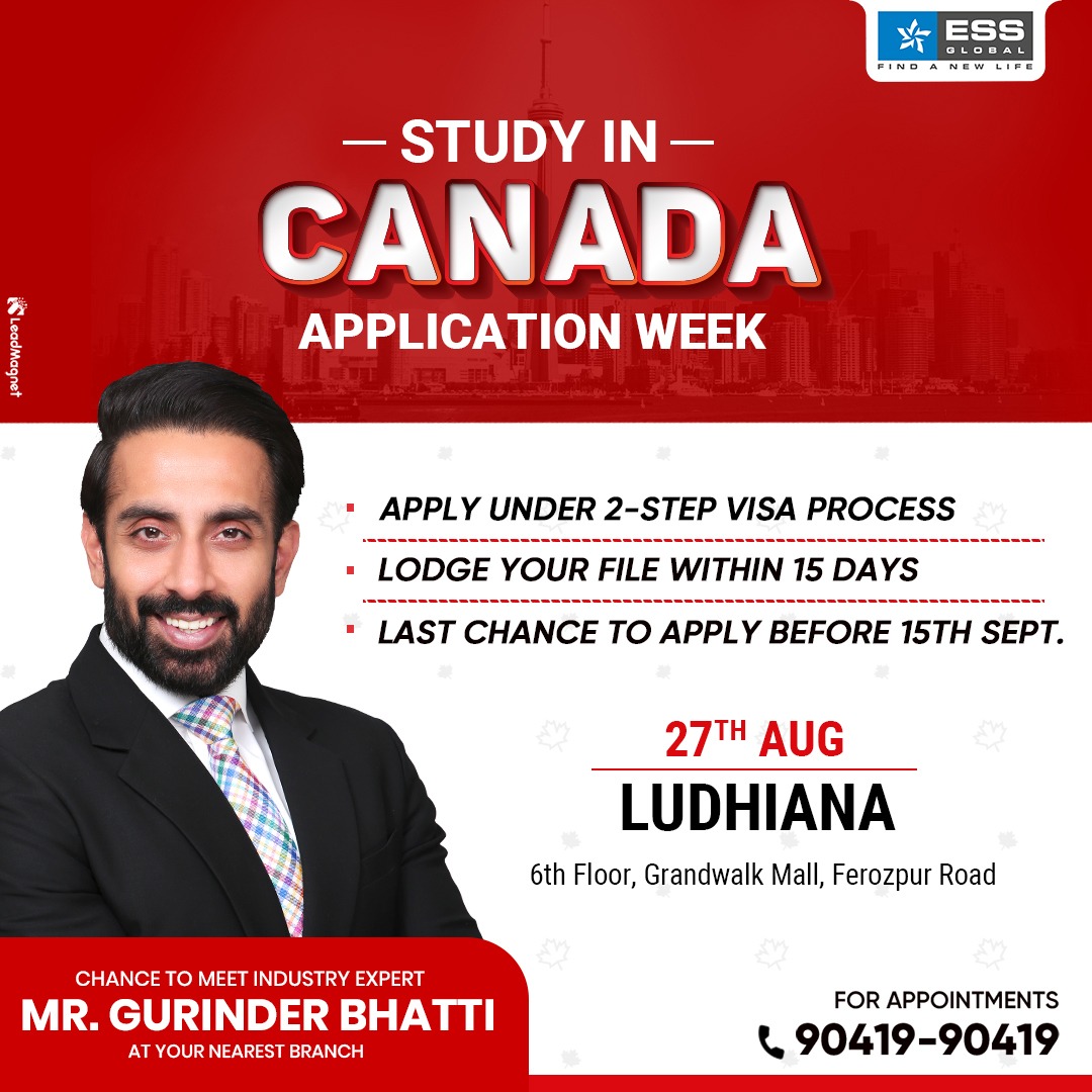 Studying in abroad is a dream of many. For aspirants who are keen about education in their favorite countries ESS Global is organizing Study in Canada Application Week on 27th August in Ludhiana to welcome the students for appropriate study abroad assistance.