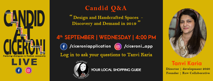 Announcing our next guest – Tanvi Karia, Director - development2020 and Founder - Raw Collaborative who will talk with us at length on "Design and Handcrafted Spaces - Discovery and Demand in 2019"