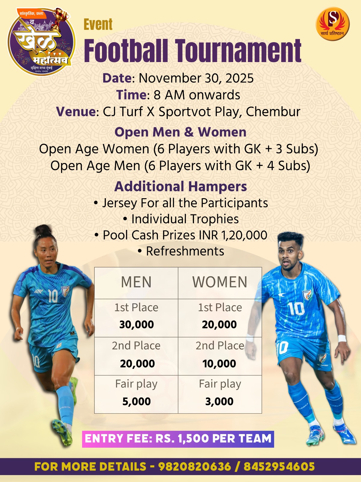 | Tug of war | Swami Samarth | Dadar Shivaji park | Nov 22 | 5 pm-9 pm | 20000 |
