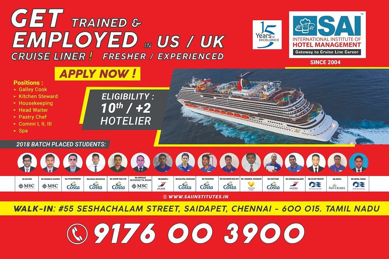 Sai Institutions - Hotel Management, Viscom, Fashion Design Courses, Cruiseship Training & Placement