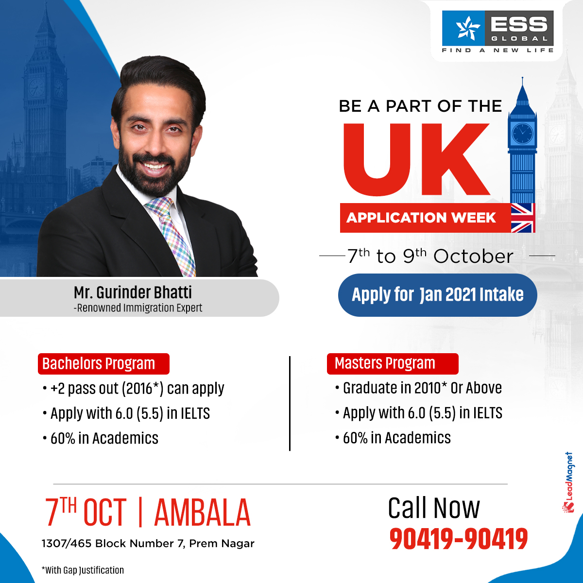 An amazing opportunity for all the international students to be a part of ESS Global’s UK Application Week hosted by none other than the industry expert, Mr. Gurinder Bhatti. All your doubts will be cleared by the expert himself. Join the application week and take the benefits of immediate profile assessment and one to one counseling session from the experts.