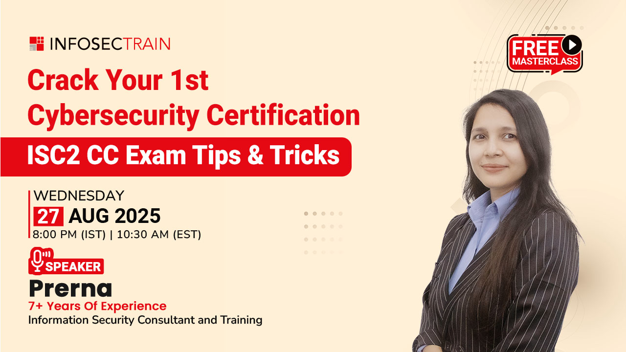 Free Register Now: https://www.infosectrain.com/events/crack-your-1st-cybersecurity-certification-isc2-cc-exam-tips-tricks/