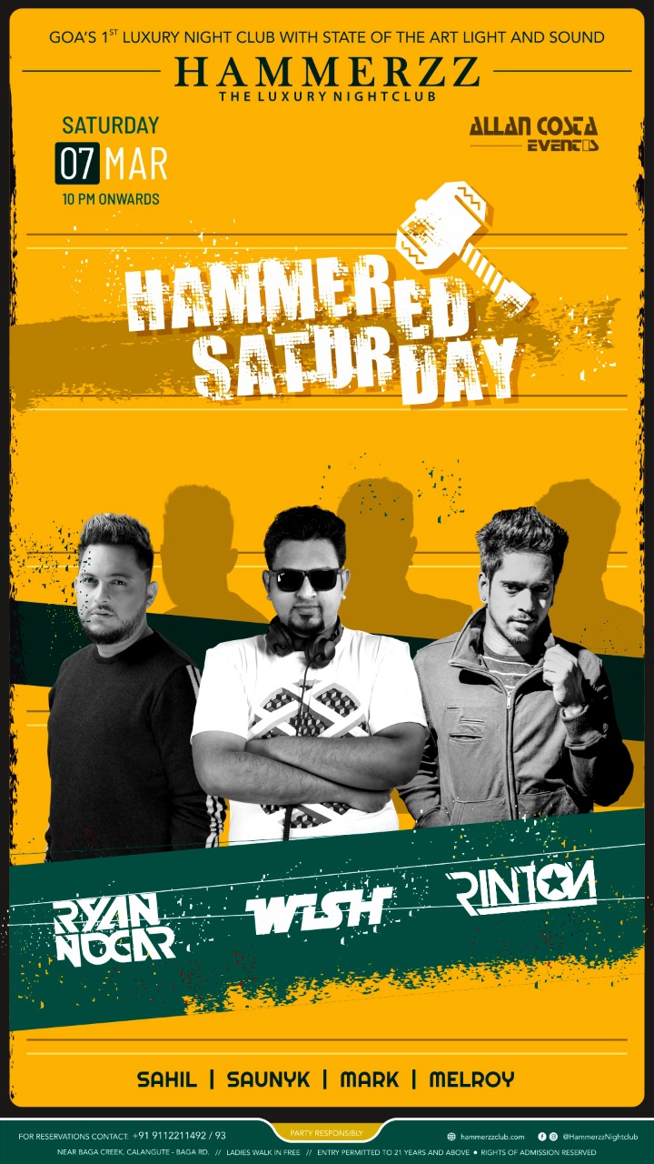 Goa's most happening Saturday Night Party is back at city's luxurious nightclub, HAMMERZZ on 7th March 2020. The night will feature Goa’s legend DJ Ryan Nogar. Versatility is his key. Thus, be ready to get captivated with his genres like the club, hip hop, deep and progressive house, RnB, Bollywood, and retro.