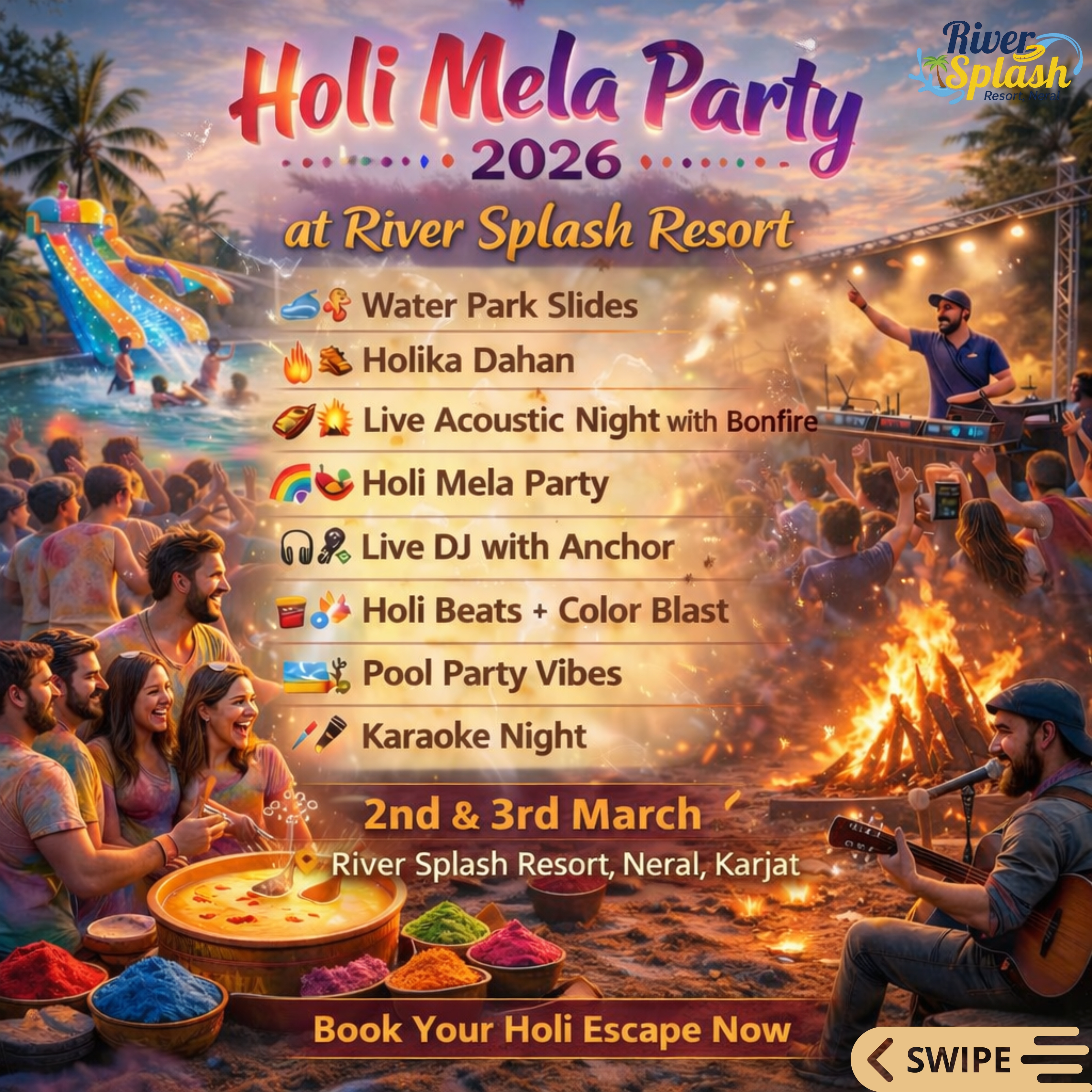 Holi Mela Pool Party 2026 at River Splash Resort, Neral (Karjat)