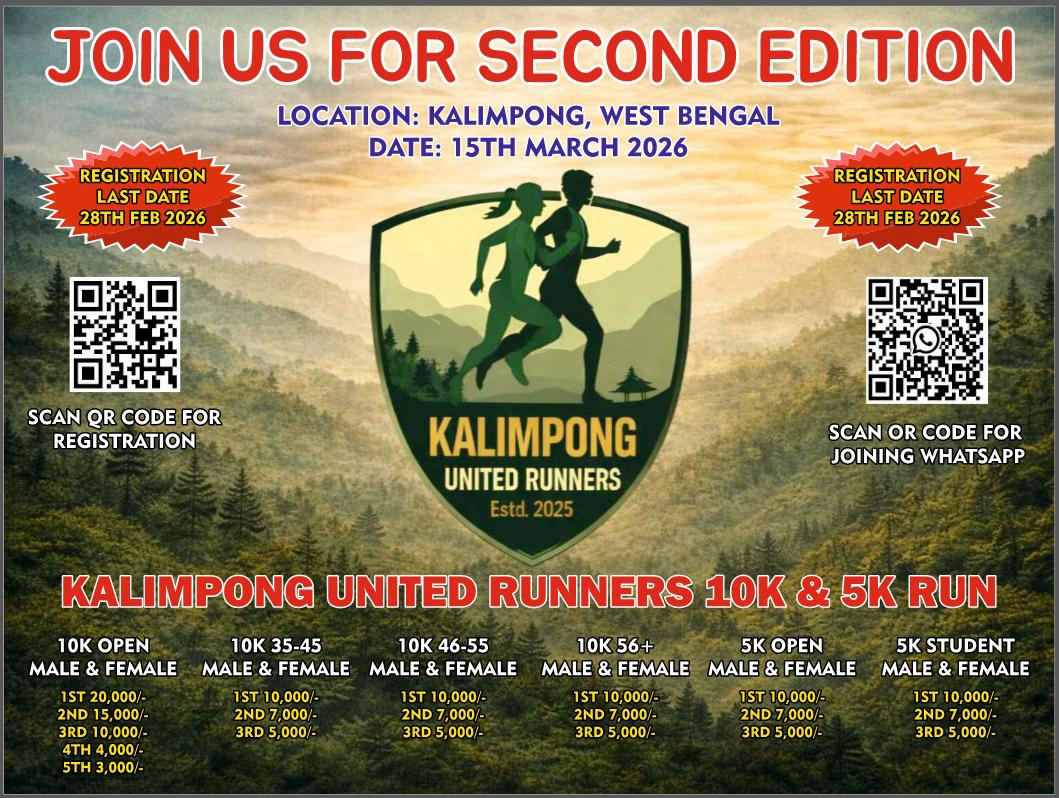 We are excited to invite you to be a part of the 2nd Edition of the Kalimpong 10K & 5K Run, a celebration of fitness, endurance, community spirit, and the breathtaking hills of Kalimpong. Building on the success and enthusiasm of our first edition, this year’s run promises a better, safer, and more rewarding race experience for runners of all levels.