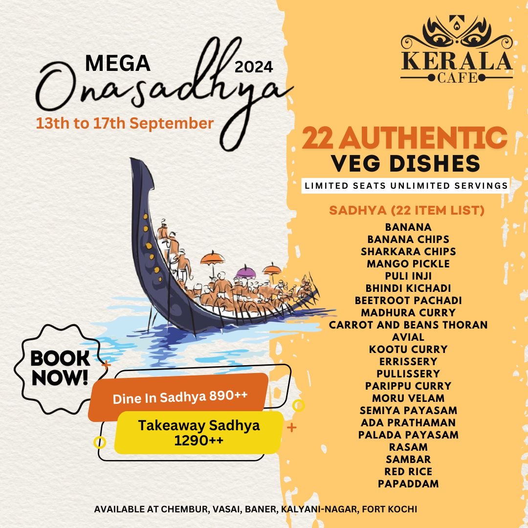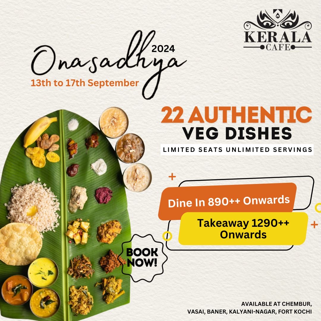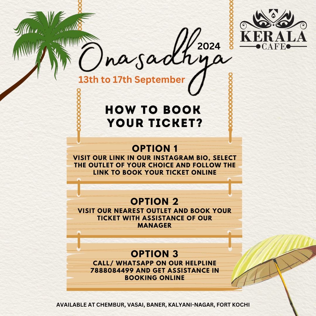 To be a part of this unforgettable Onam experience, simply book your tickets online and secure your spot at our Pune, Mumbai and Kerala restaurants. Book your tickets now and get ready for a truly authentic and delightful feast.