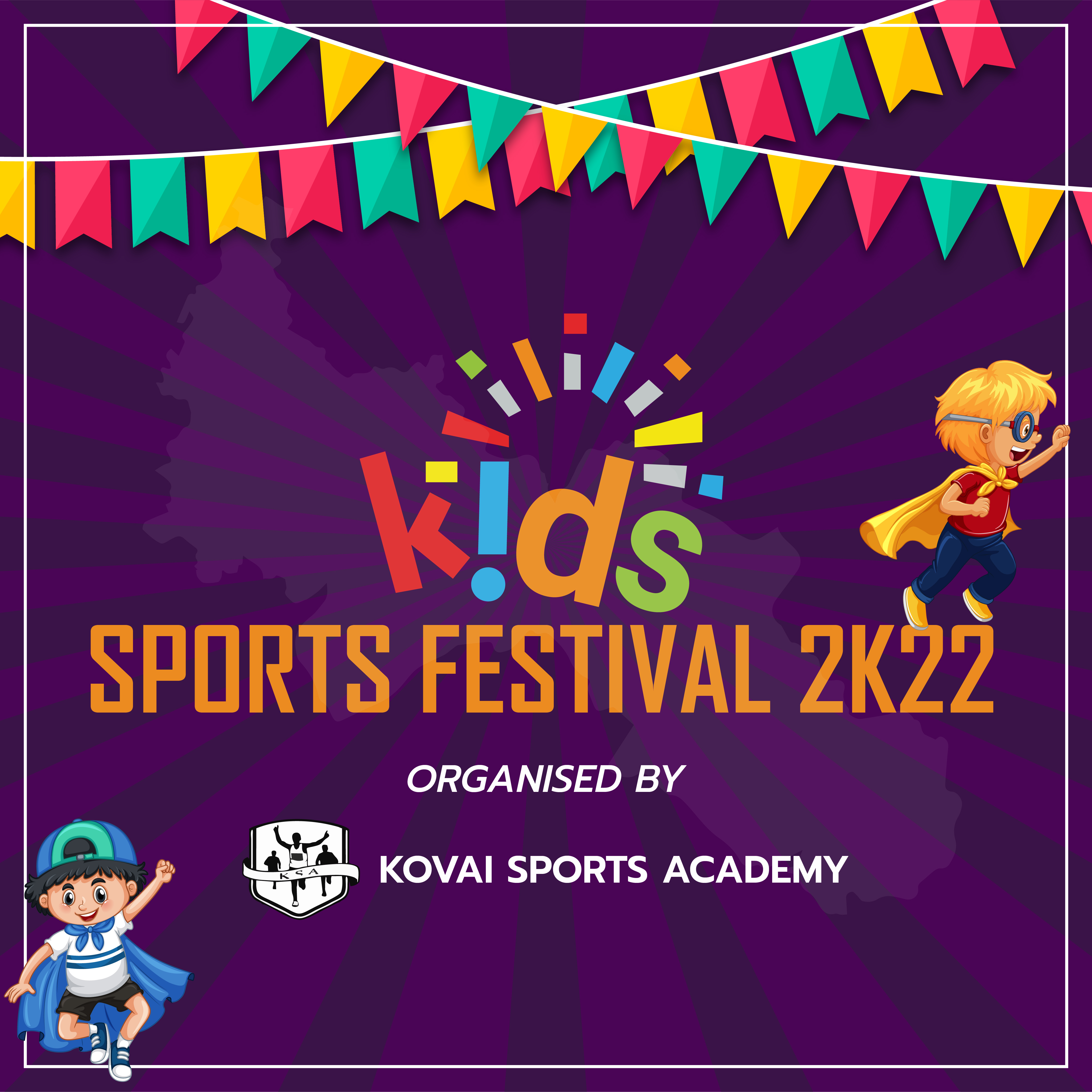 We are happy to invite you for the PRESTIGIOUS 2nd KIDS SPORTS FESTIVAL 2K22 .Kids Sports Festival is a most popular athletic event for Kids organised in Coimbatore, where kids from all over TamilNadu participate in this grand event . This event is focused on finding grassroot talents and Developing them into national and International achievers.