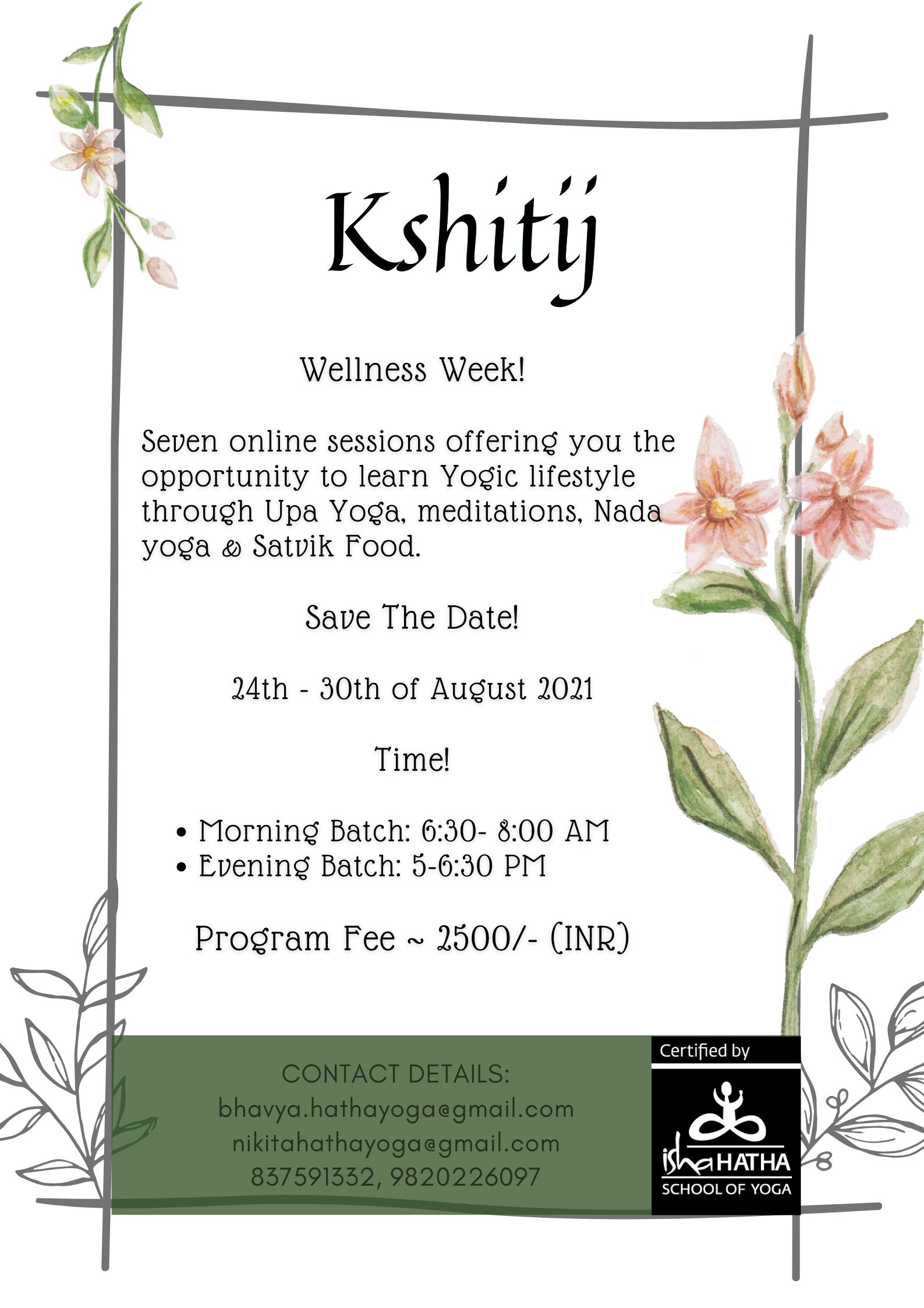 This program will be conducted by two Hatha Yoga teachers, trained by Isha Hatha Yoga School in Classical Hatha Yoga. They will be supporting you with the practices.