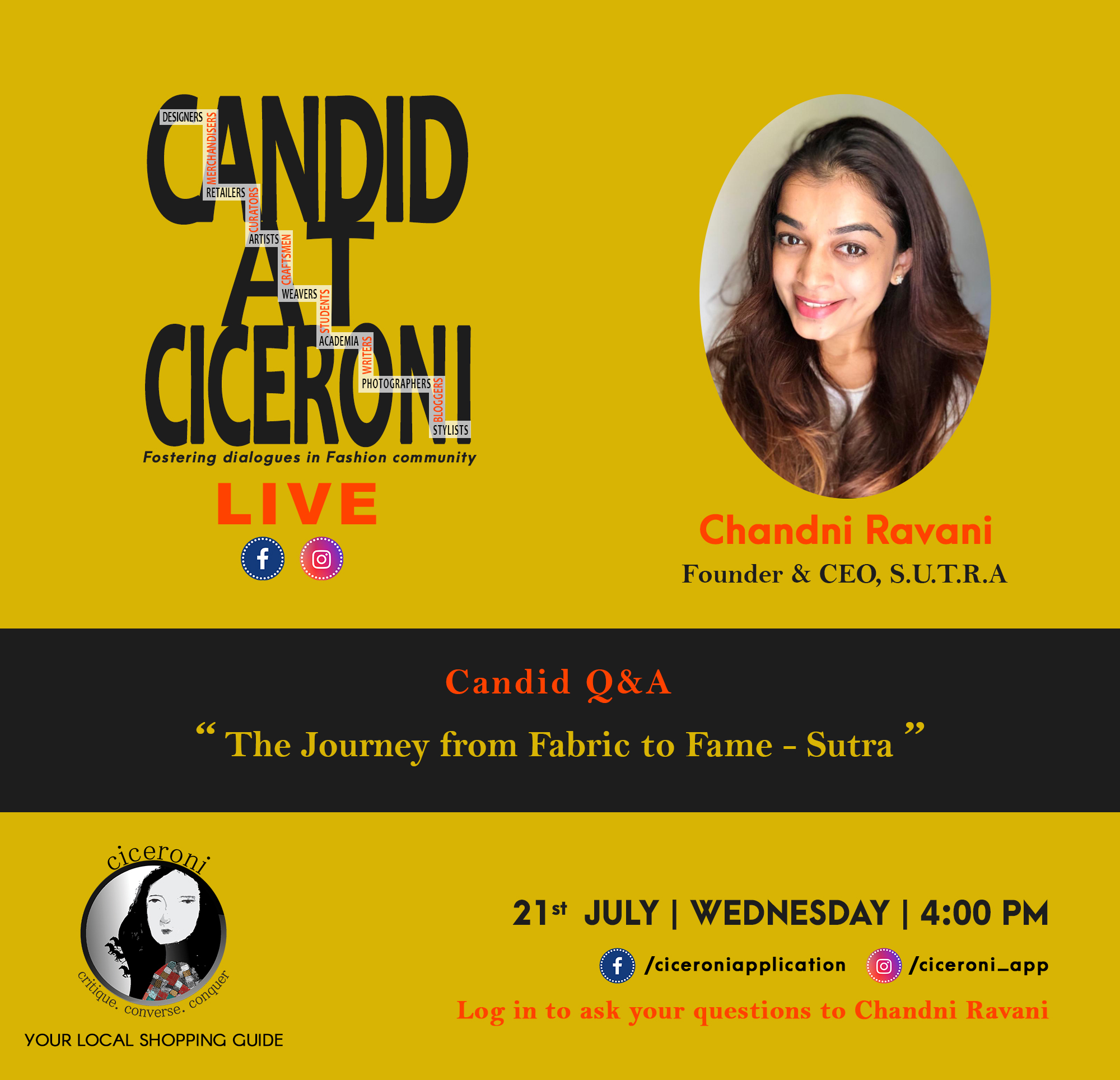 To answer these questions and more, Chandni Ravani, Founder & CEO, Studiosutra.in will be LIVE on Candid at Ciceroni on 21st August , 4.00 pm.