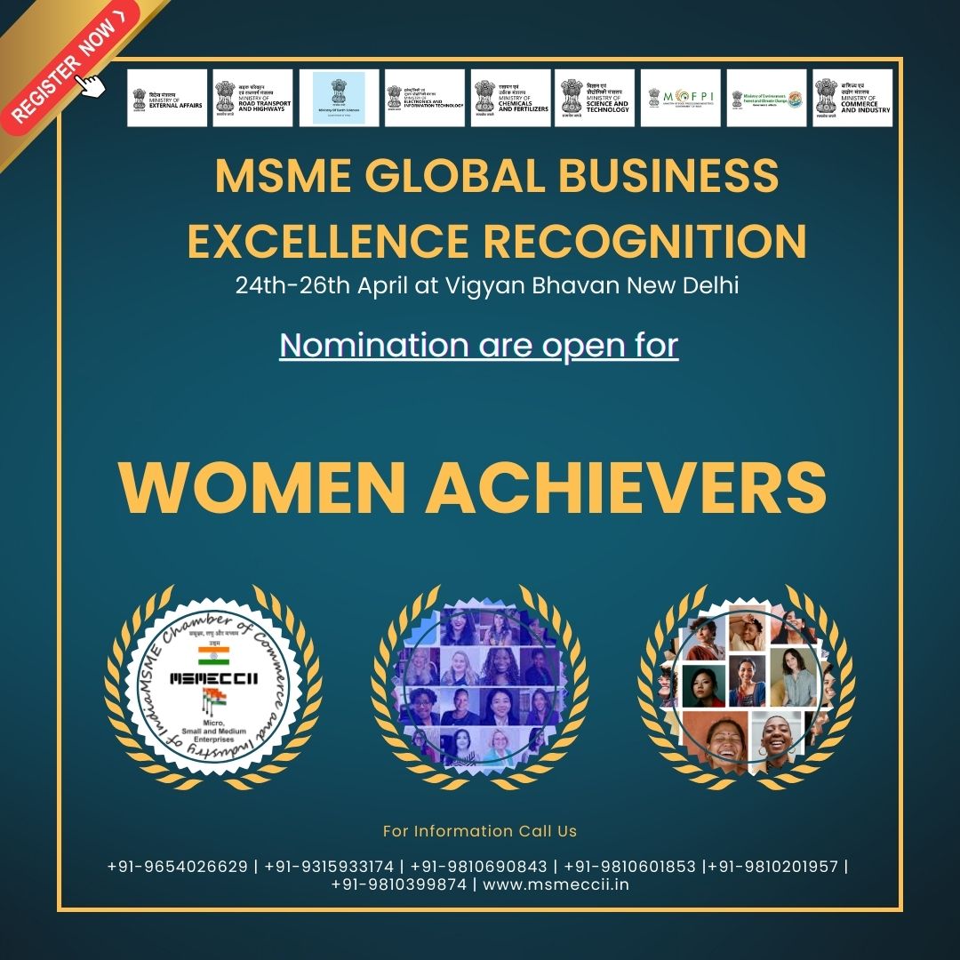 MSME Chamber of Commerce and Industry of India(MSMECCII) together with (SEPC) Services Export Promotion Council (Under The Ministry of Commerce & Industry, Govt. of India) & (NEERI) National Environmental Engineering Research Institute will host World's Largest Global Summit, Exhibition & Business Excellence Awards on Sustainability and Make In India Initiative, Make for World at Vigyan Bhawan, New Delhi India from 15th May - 17th May 2023