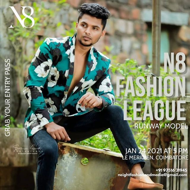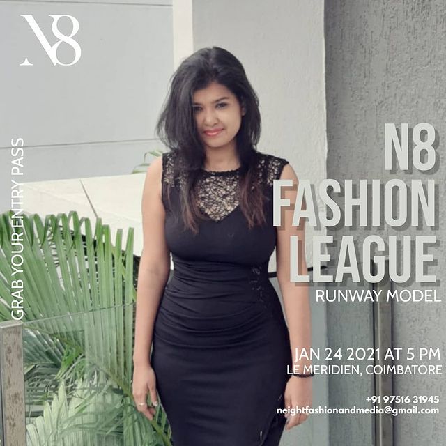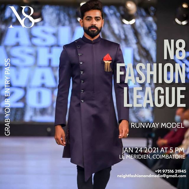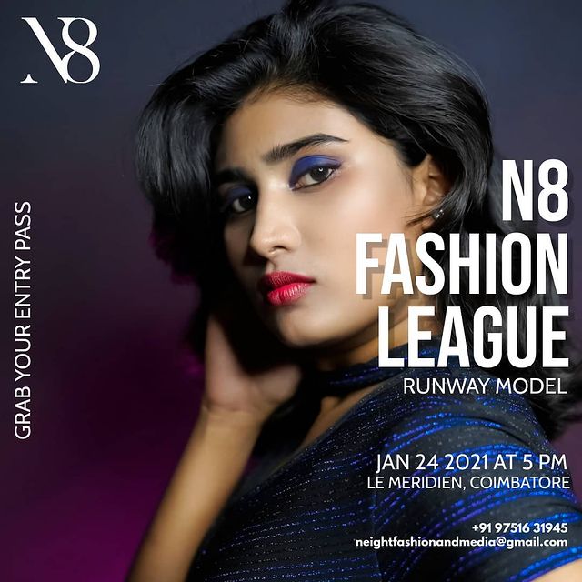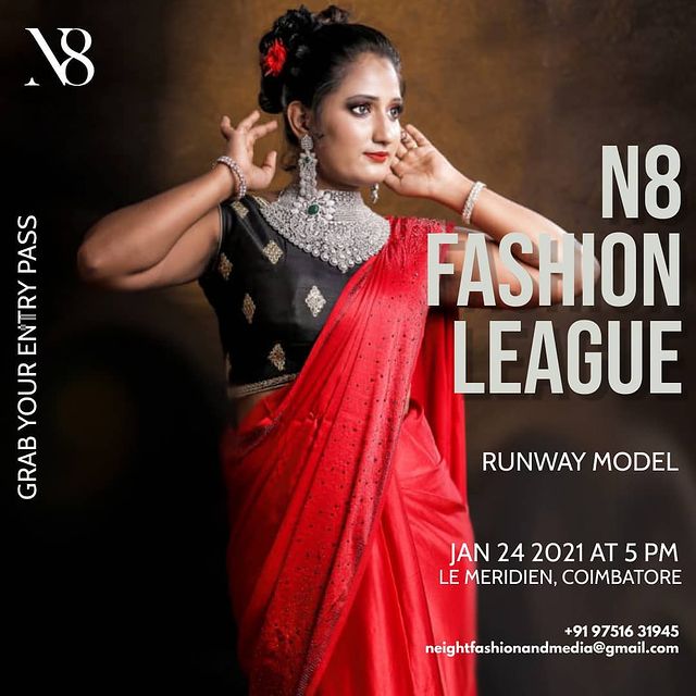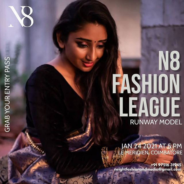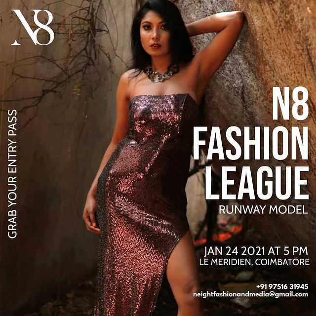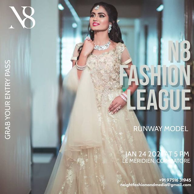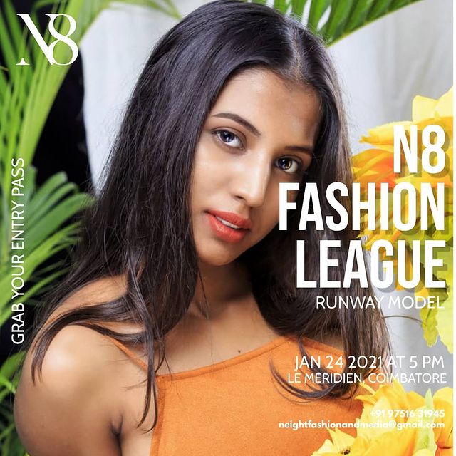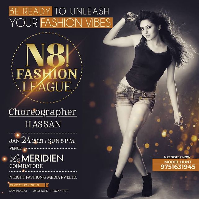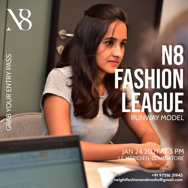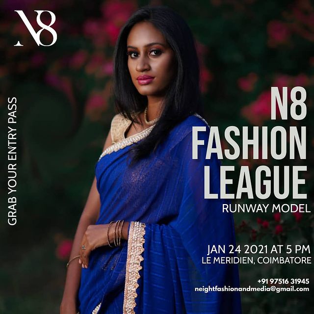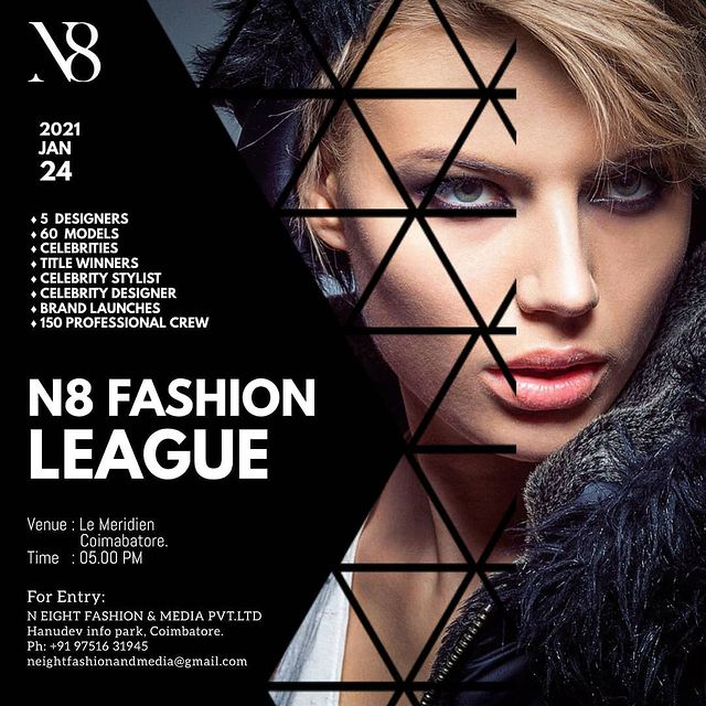 The event will be on January 23, 2021 (Workshop with celebrity choreographer/stylist) to January 24, 2021 (Main event – N8 Fashion league – Designer Show) from 5.00 PM to 10.00 PM at Le Meridian, Coimbatore.