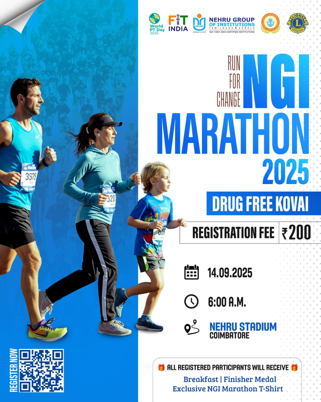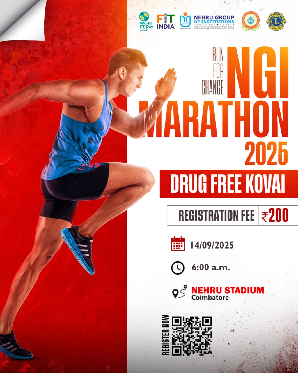 The NGI MARATHON is a spirited public run organized by Nehru Group of Institutions in association with the Department of Physical Education and the Lions Club of Coimbatore, as part of the National Sports Day celebrations. This event aims to promote physical fitness, healthy lifestyle habits, and raise awareness against drug abuse, especially among youth. Open to students, professionals, fitness enthusiasts, and the public – this marathon is more than a race; it’s a movement towards a stronger, drug-free society.