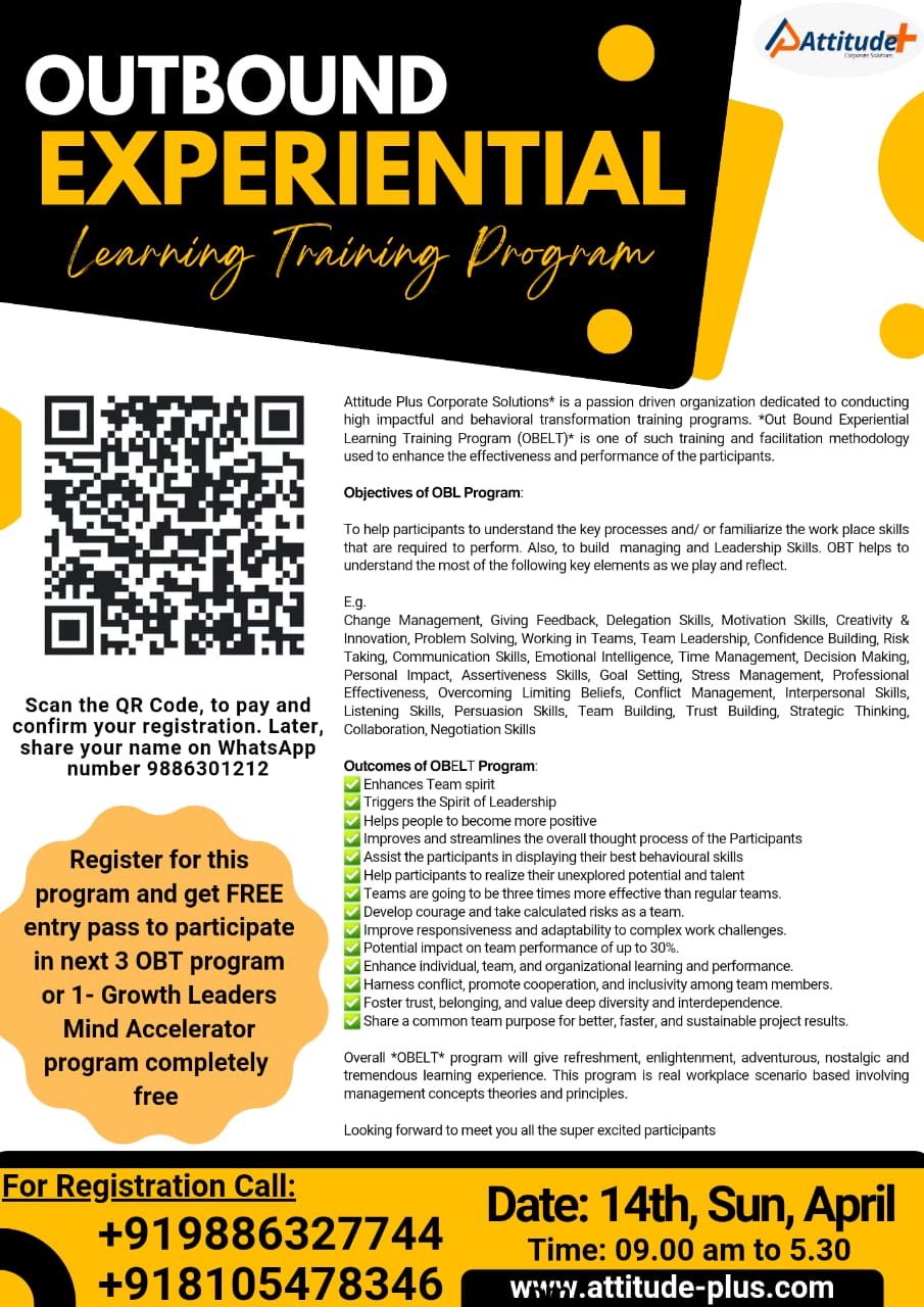 Learn the art and significance of Goal Setting, Strategy development, Planning, Communication, Coordination, Collaboration, Decision making, Flexibility, Solution centric, Team building, Adaptability, Problem solving...etc. Program helps in overall personal and professional development