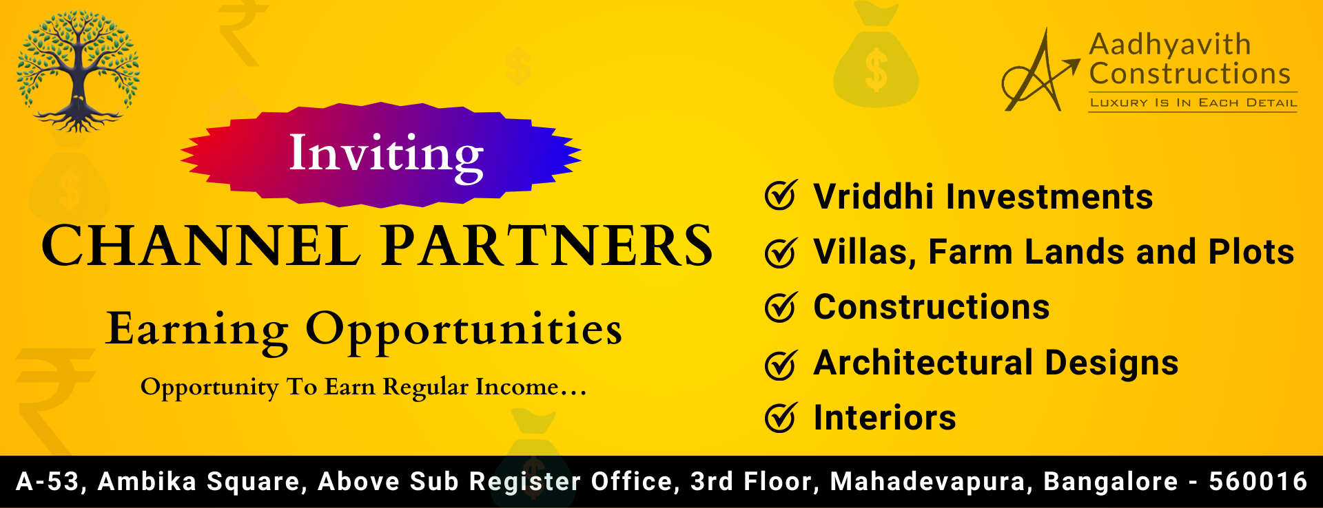 In Bangalore everyone purchases Land/Plots at over valued prices. We at Vriddhi Capitals deals and we provide properties at Actual price, 3 times lesser than the market price. An oppurtunity for Real Estate Channel Partners and Freelancer to work with us and create a good amount of wealth.