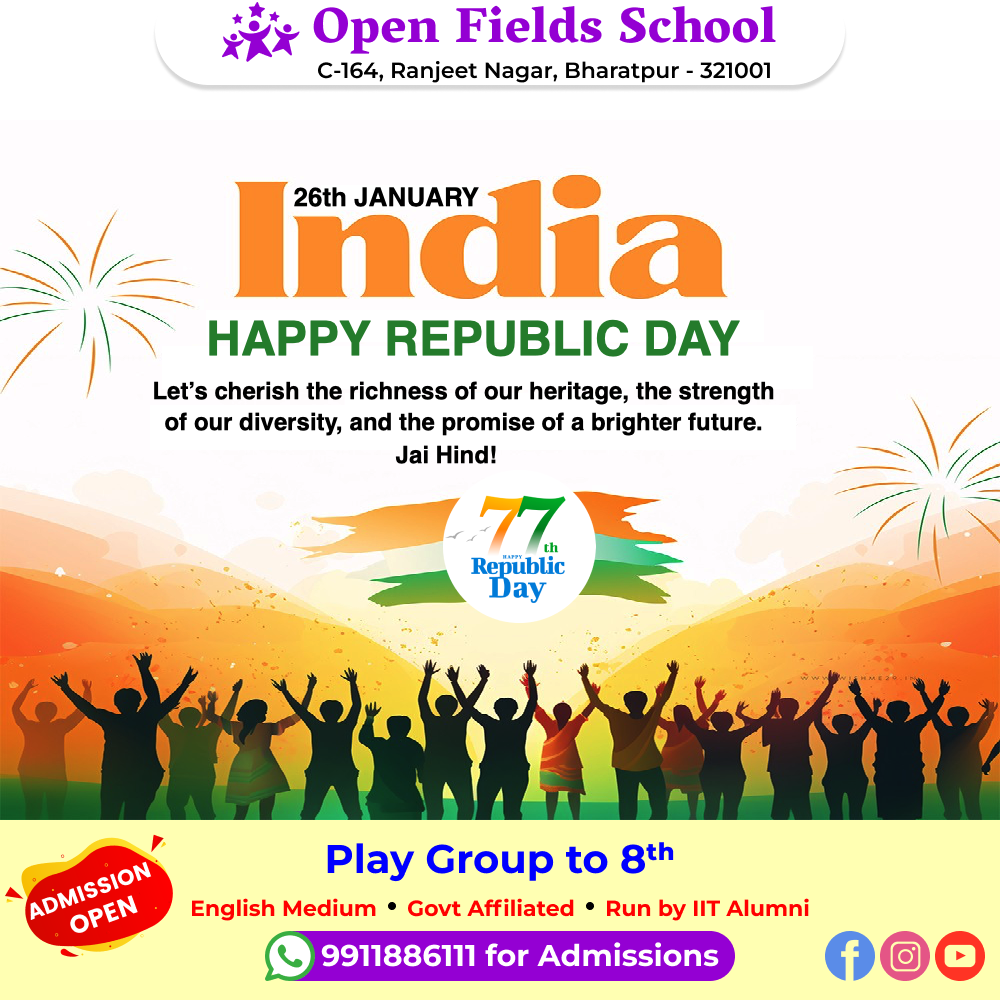 Let's come together to cherish the essence of freedom and responsibility this Republic Day and celebrate at Open Fields School - Best School in Bharatpur!