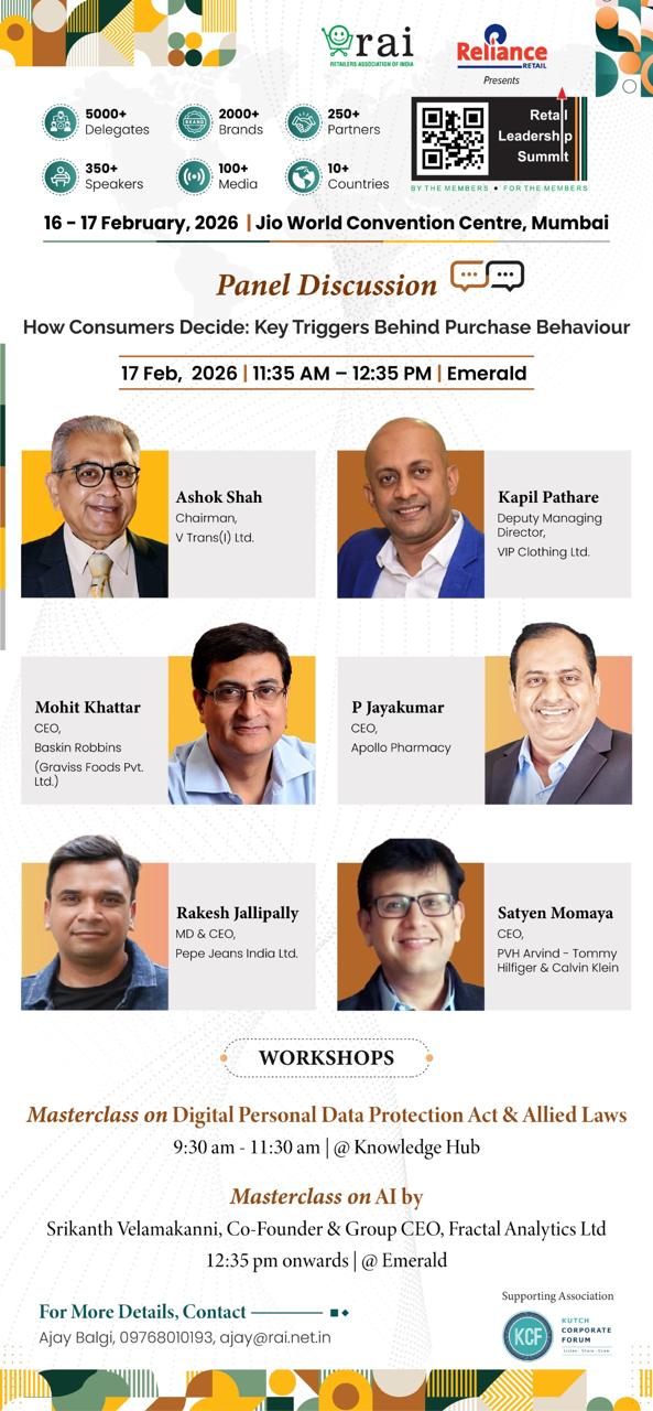 Join us for a special Panel Discussion on How Consumers Decide: Key Triggers Behind Purchase Behavior and Two Workshops at Retail Leadership Summit. Details given in below image.