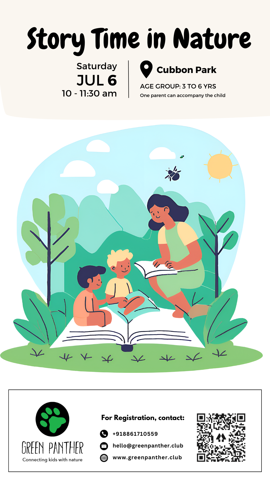 When you READ a storybook to a child, they will enjoy the story and look at the pictures. They are mere observers. But when you TELL a story, the child has to create the image in their own mind. That is when imagination is nurtured, connections are made !To add more fun we will be having some activity based on the story and some exploration of the surroundings as well.