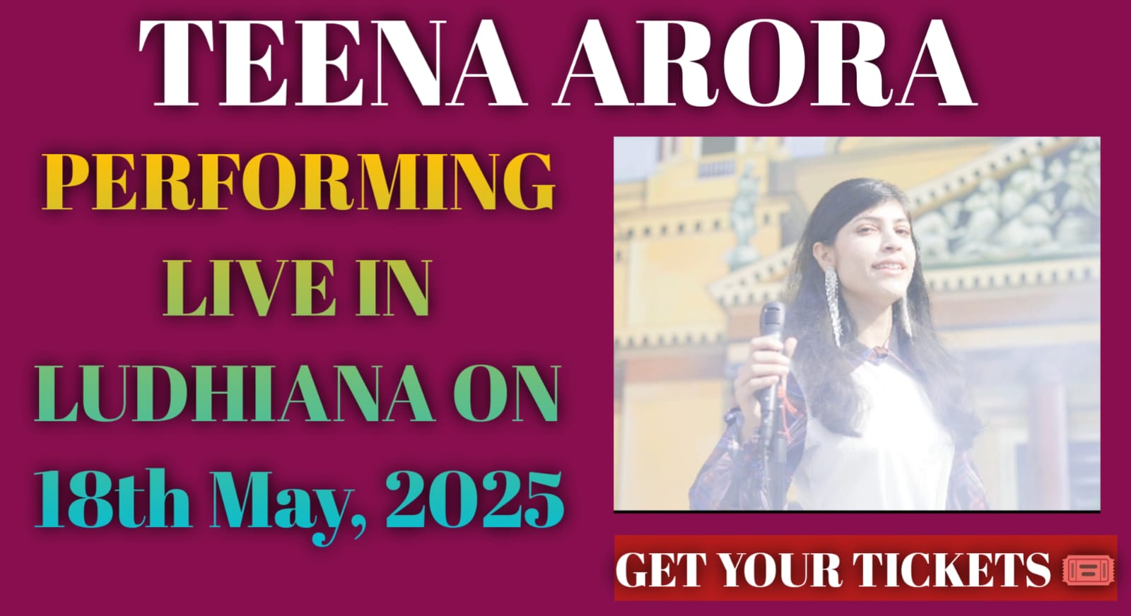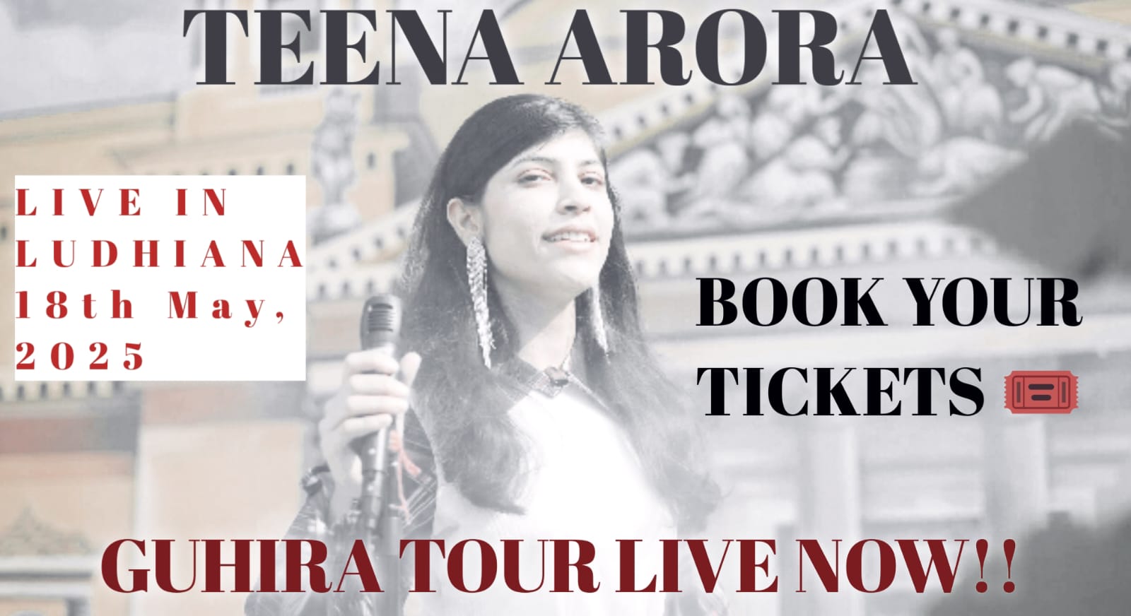 Join Teena Arora for an unforgettable live concert filled with emotions, melodies, and stories straight from the heart. Experience the magic of her original songs from the album Guhira, performed live for the very first time.