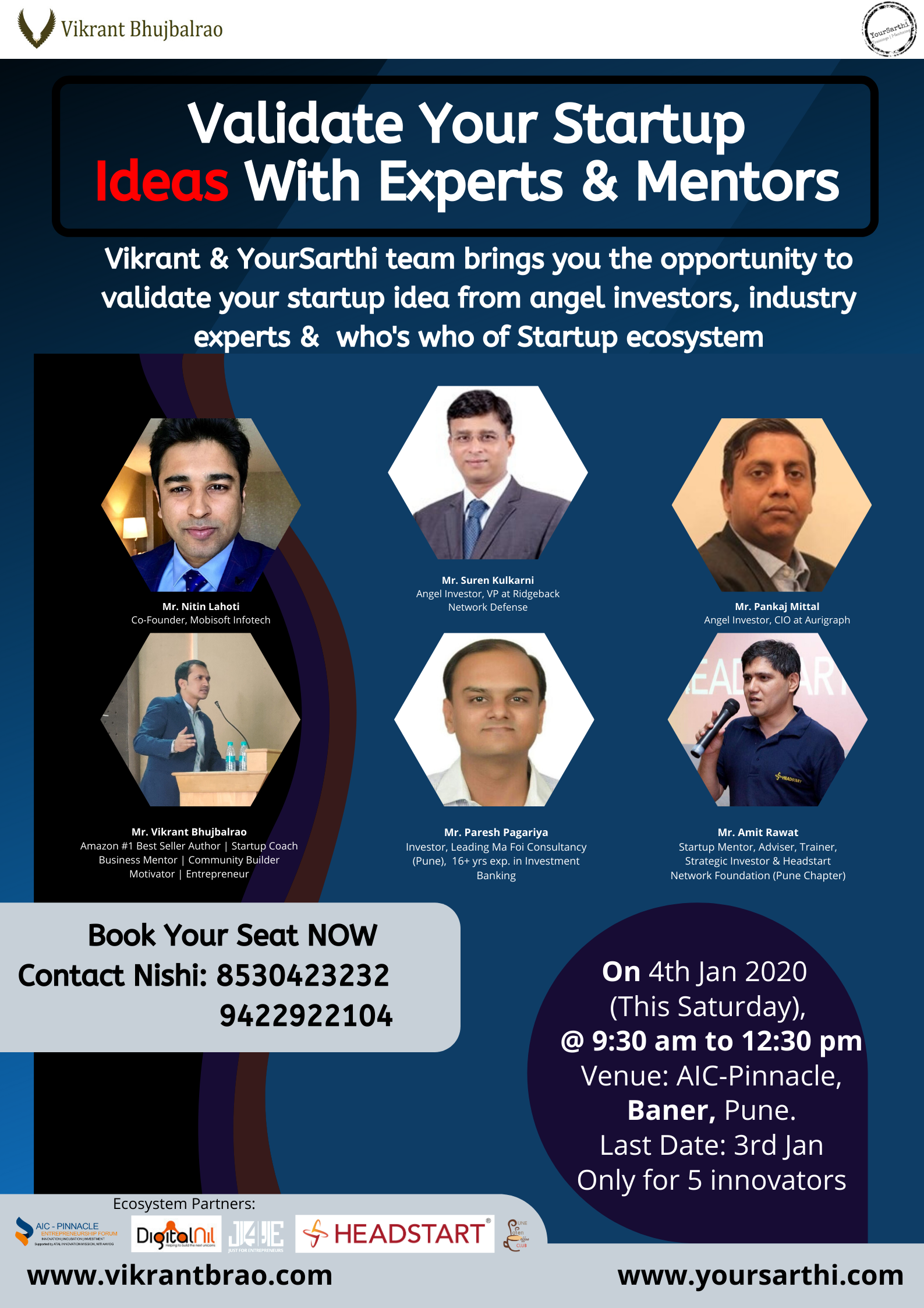 Venue: AIC Pinnacle Entrepreneurship Forum, 4th Floor, Primrose Mall, Main, Baner Rd, near Datta Mandir, Baner Gaon, Pune, Maharashtra 411045