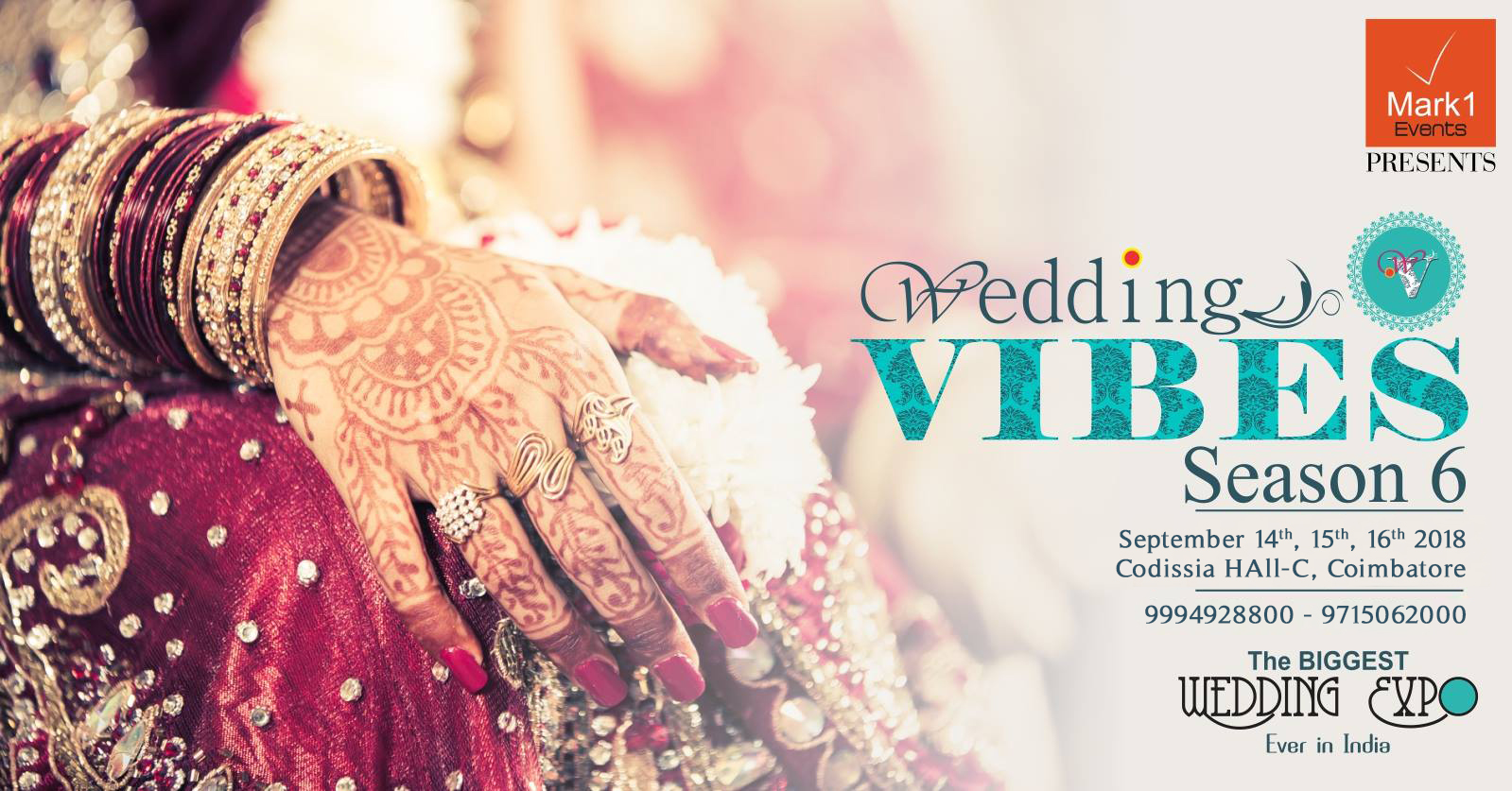 Mark1 Events presents to you, Wedding Vibes- The ultimate wedding expo - now in Codissia, Coimbatore. September 14th, 15th and 16th -2018 Wedding Vibes Season 6 the ultimate wedding exhibition