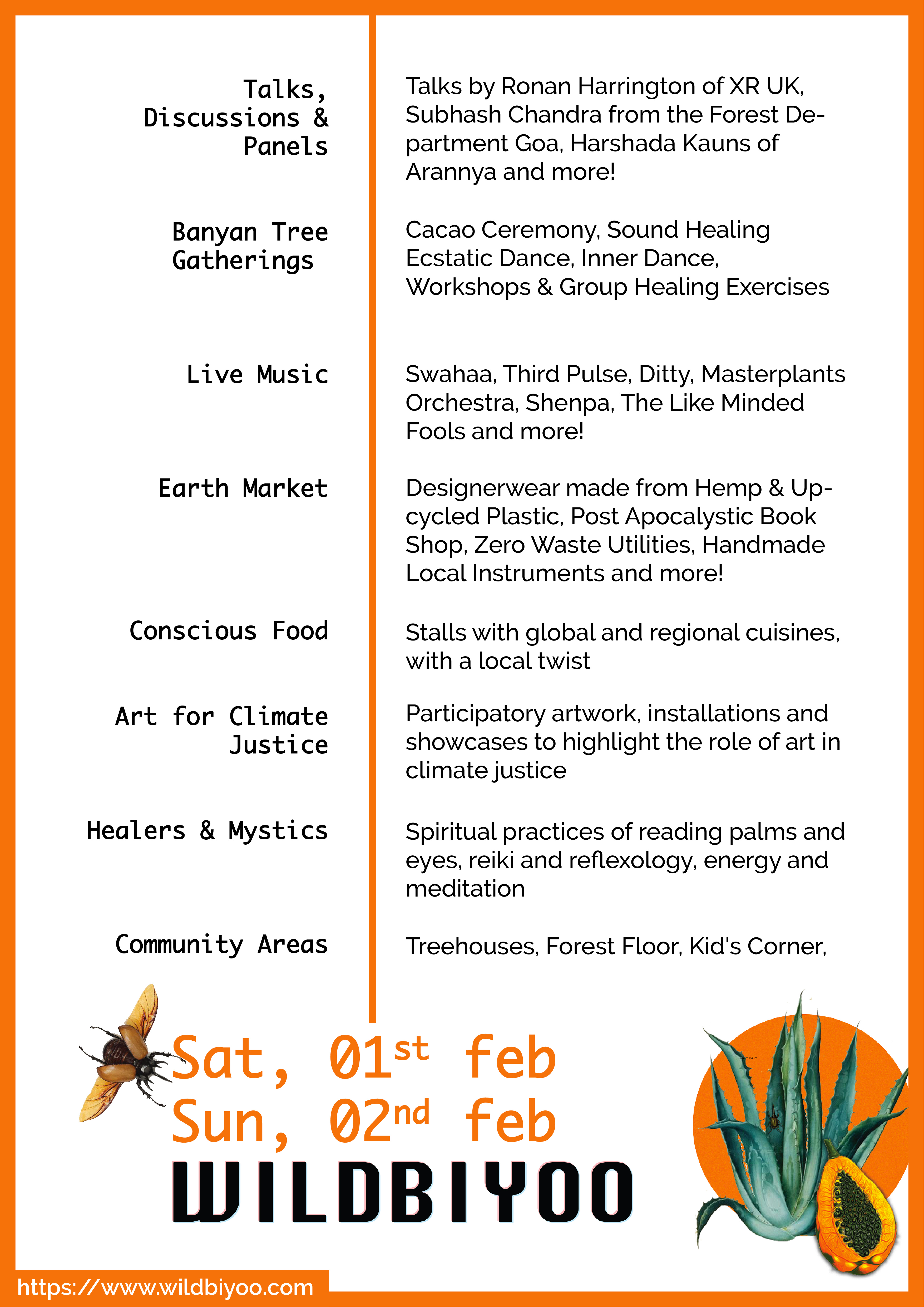 - Goa's first ever festival for and about local community resilience to and awareness about climate change. A realm for wild explorations, conscious revelling, and a chance to join together in celebrating the earth with a jam packed line up of live headline musical acts, theatre, dance and immersive and participatory art.