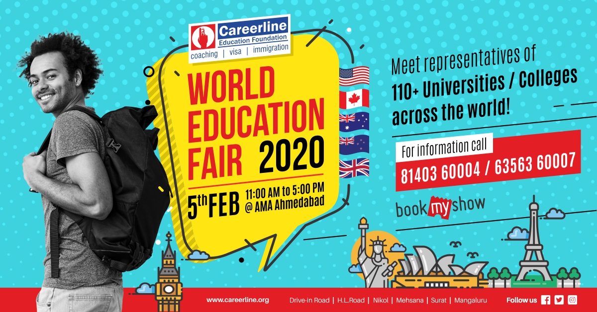 Careerline Education Foundation brings to you "World Education Fair 2020" meet University and College representatives and get spot assessment and application* as well as solve your doubts.
