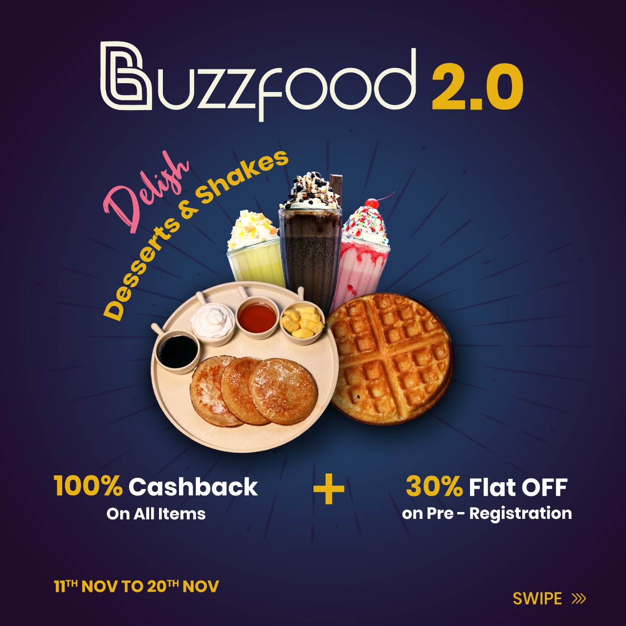 Since 2020, Buzzfood Diner's Cafe is delivering world class cuisines to you. From your favorite hand tossed pizzas to heavenly chaats, we just don't serve food, we serve an experience.