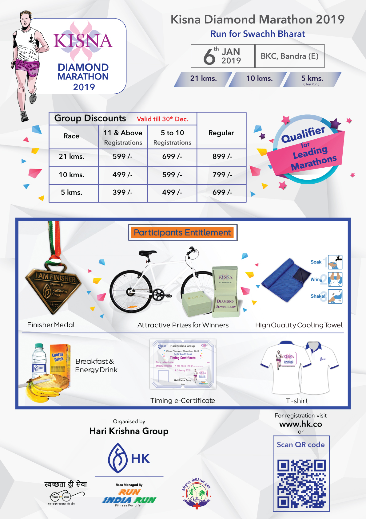 10th Kisna Diamond Marathon Dec. 2025 - Run for Swachh Bharat Date: December 28th, 2025. Venue: Bandra East, Mumbai - 400051