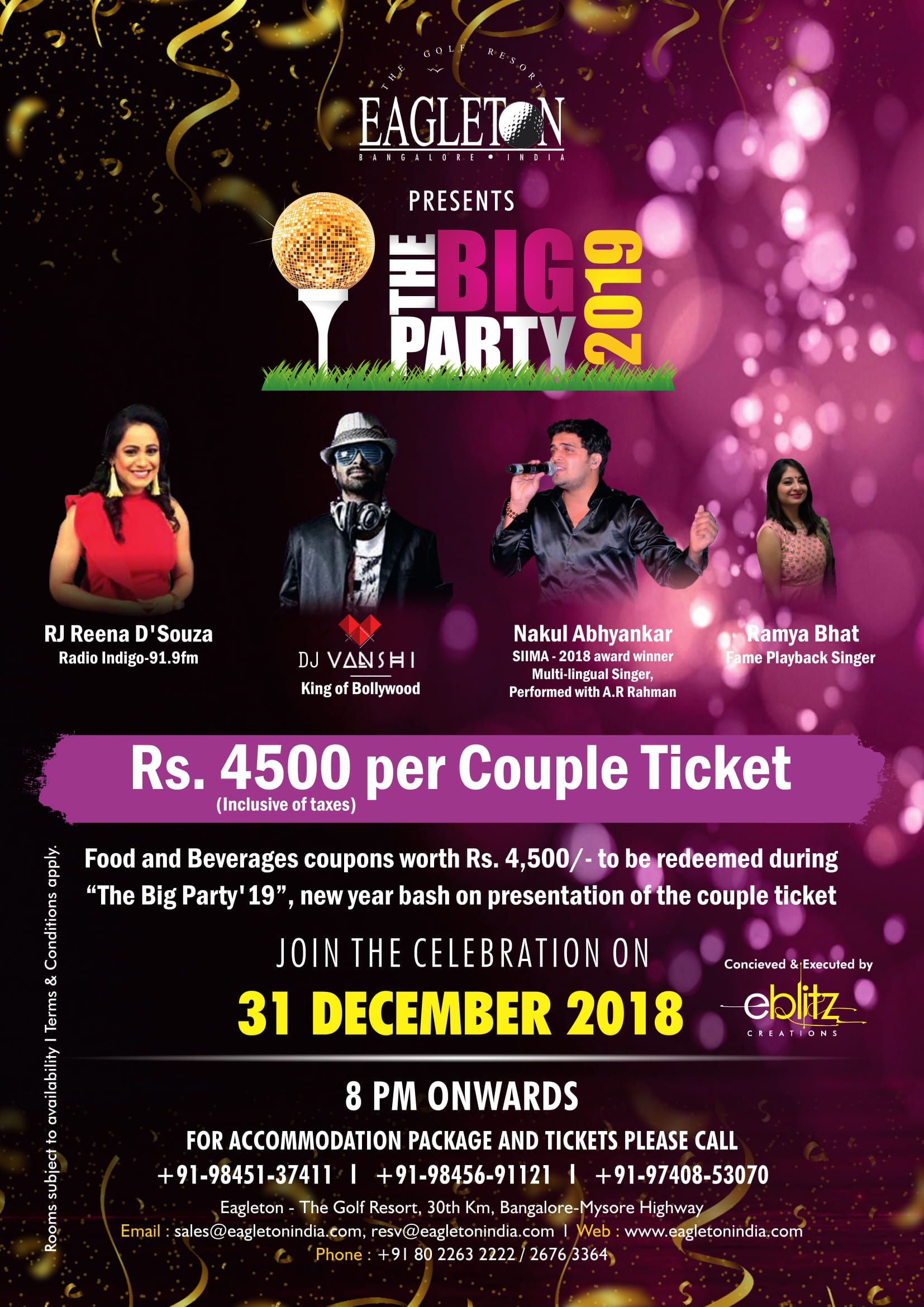 The BIG PARTY 2019 New year celebration @ Eagleton Golf Resort Bengaluru