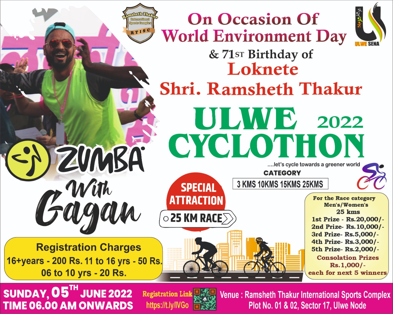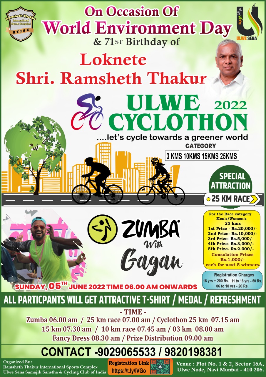 On the Occasion of World Environment Day and the 71st birthday of Loknete Shri Ramsheth Thakur, Ramsheth Thakur International Sports Complex and Ulwe Sena Samajik Sanstha has organized Cyclothon and Race for the First Time in Ulwe, Navi Mumbai
