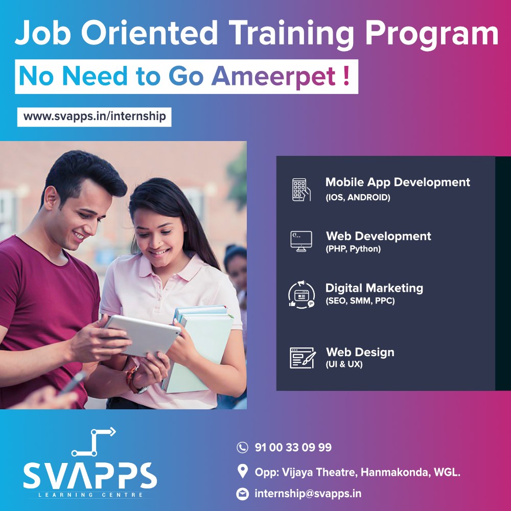 SVAPPS Specializes in Best Professional Web Designing , Web Development , Best Digital Marketing, SEO Company, Mobile App Development, IOS Application Development , Android Development,in Warangal, Hyderabad, USA https://svapps.in/internship